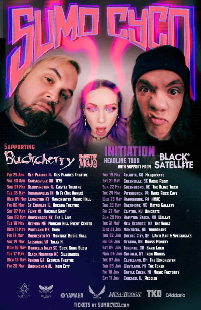 After setting the music world ablaze last year with the release of their mind-bending latest full-length album, “Initiation”, fans have been chanting for Sumo Cyco to return to the road. Now, their calls have been answered with the announcement of a slew of US and Canadian tour dates, beginning April 29! The first half of the tour sees Sumo Cyco supporting rock icons Buckcherry and special guests Blacktop Mojo, while the second half will feature Sumo Cyco headlining all dates with support from Black Satellite.